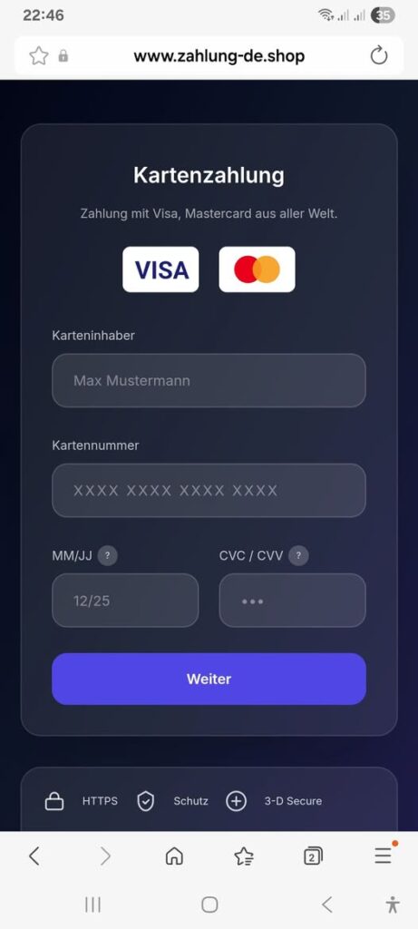Prüft bitte den Checkout-Prozess in euren Shops. Sobald euch etwas komisch vorkommt, setzt den Shop sofort offline. Auf keinen Fall darf eine Seite wie diese dort auftauchen.
